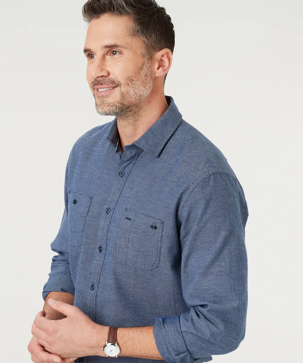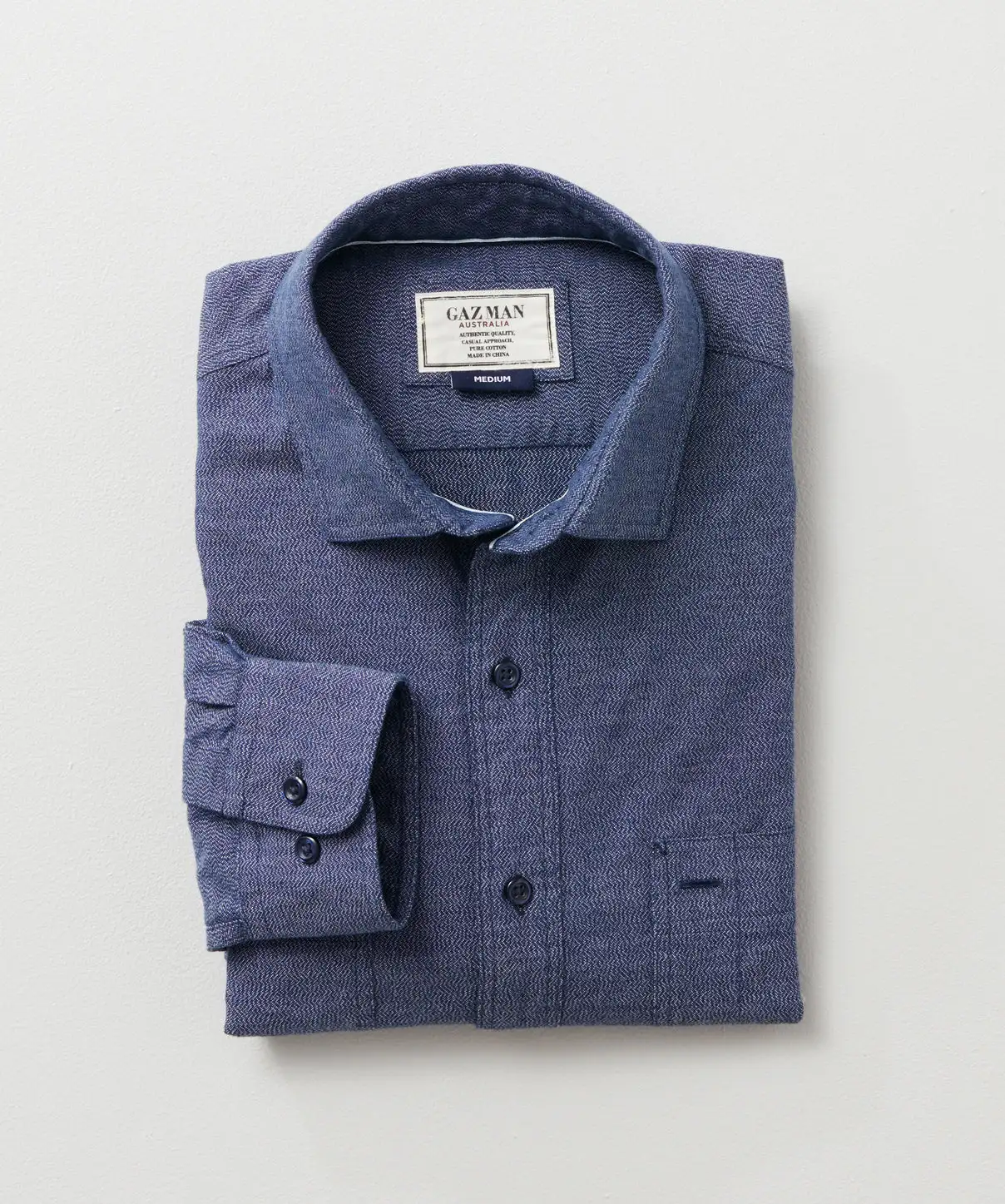Gazman Brushed Jaspe Plain Shirt – Navy