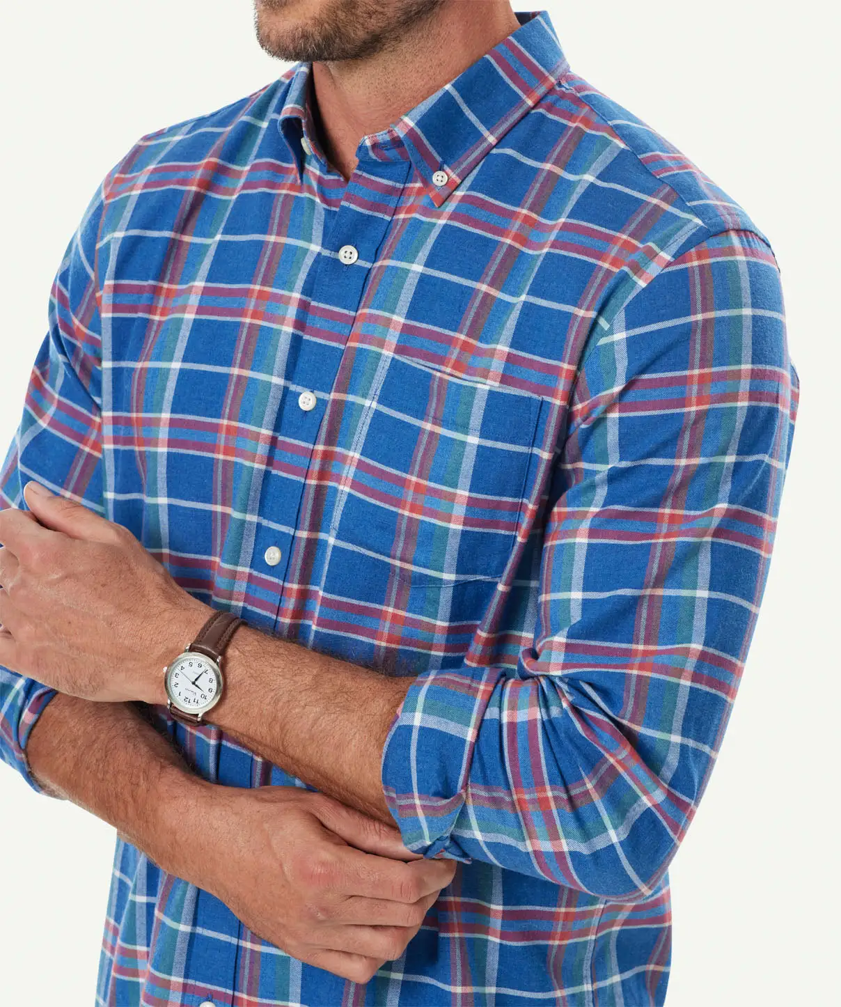 Double brushed to create a soft and smooth finish that holds in warmth, this men’s long-sleeve shirt is essential when dressing for the winter months. A casual dress shirt cut in a regular fit that features a chest pocket and pleat on the back for ease of movement that looks best paired with chinos, or jeans and sneakers for a more casual look.