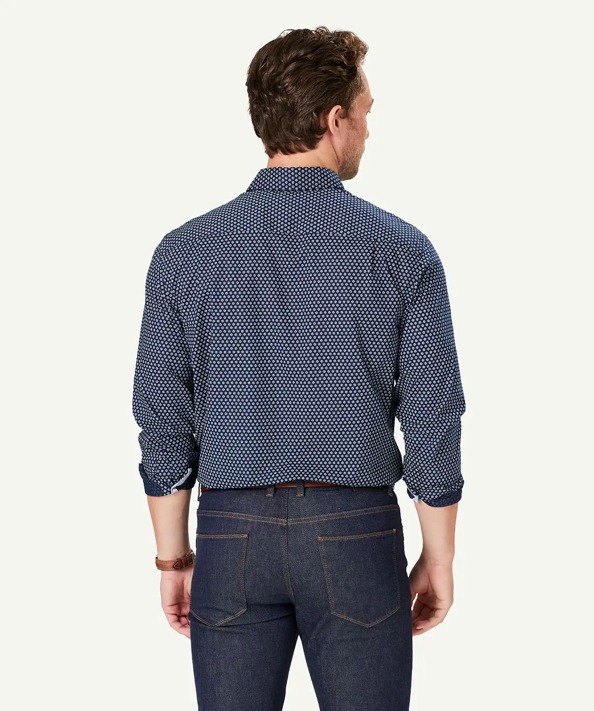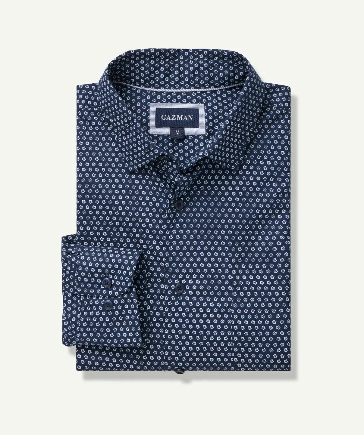 Gazman Casual Floral Print Long Sleeve Shirt – Navy