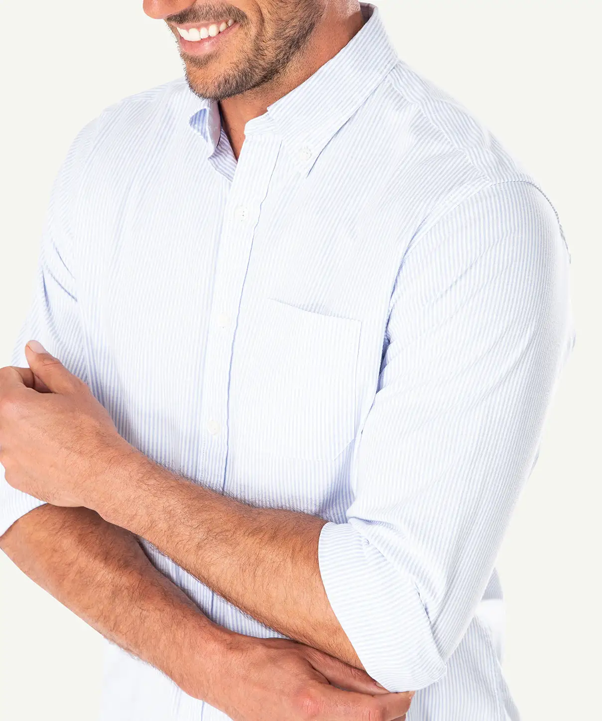 The Casual Oxford Bengal Stripe Shirt rounds off any smart casual look effortlessly. Made from a light weight, soft fabric making comfort a key feature of this versatile button-down shirt. Pair with a dark denim or comfort chino. Â