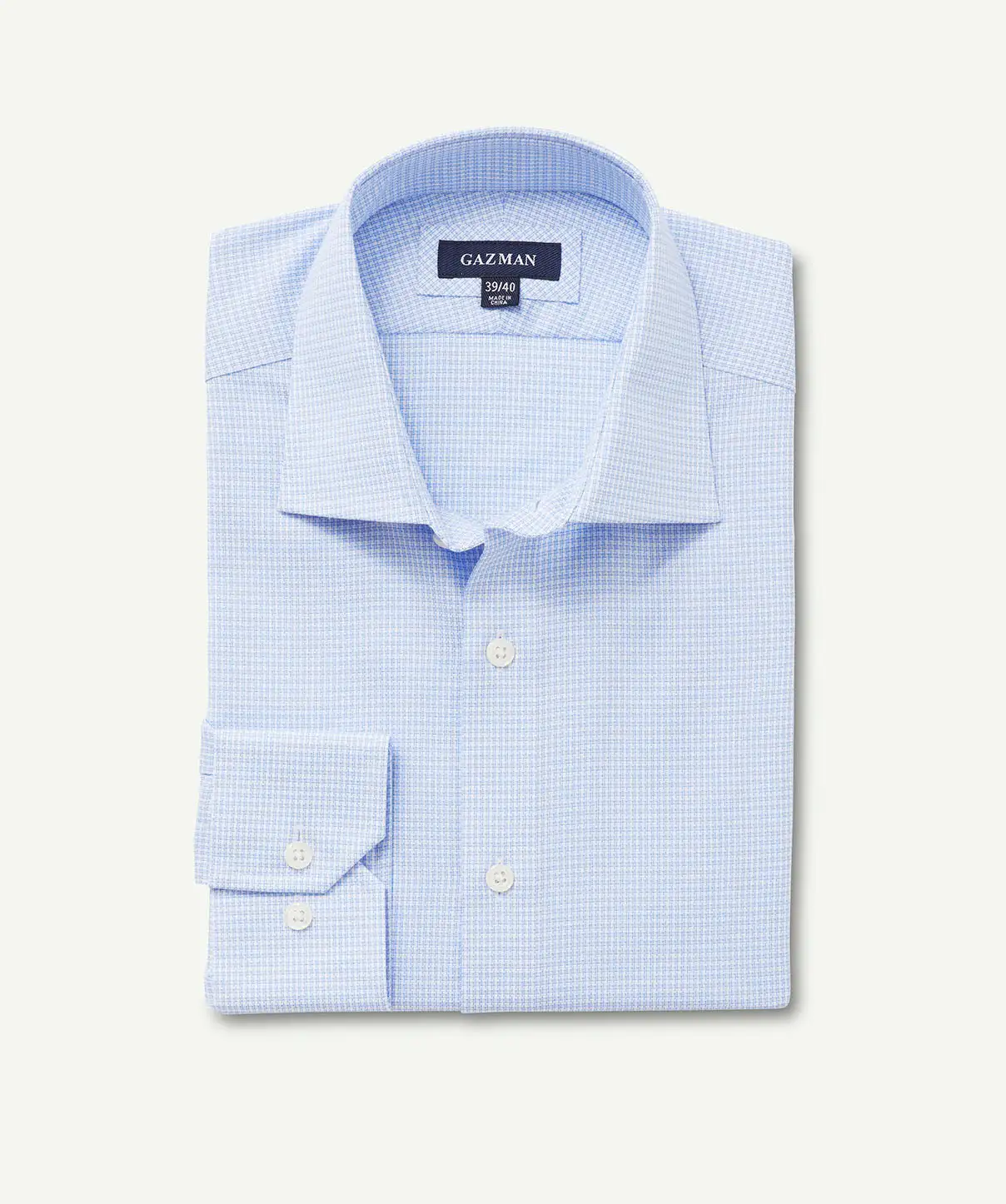 A great option for the office, this sky blue check business shirt will quickly make it’s way to the front of your wardrobe. Made from pure cotton and finished with easy care technology, this men’s business shirt is easy to iron and creases less throughout the day.