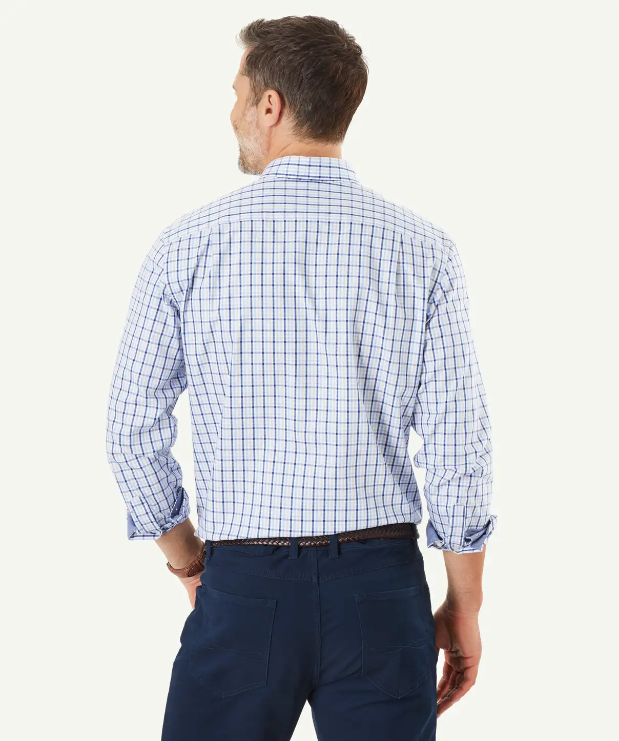 Our easy care shirts come with a premium finish so you can enjoy wearing 100% cotton without the fuss. With a low crease finish and easy to iron, this blue and white check shirt is sure to become your new favourite.