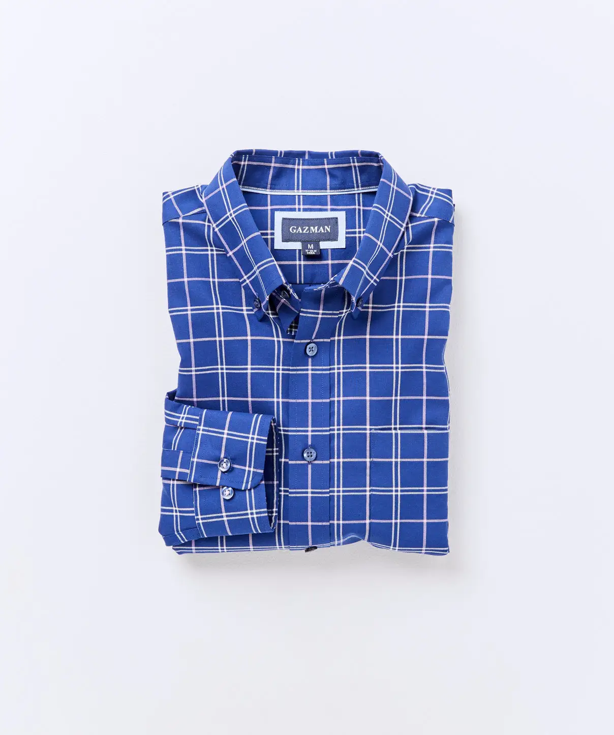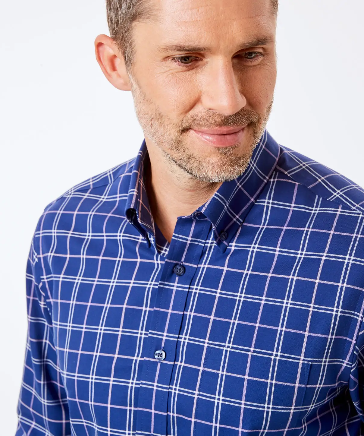 The beauty of an easy care shirt is that you never have to spend too much time preparing. Easy to iron, this royal blue check shirt will have you out the door in a flash and looking crease free for longer throughout the day.
