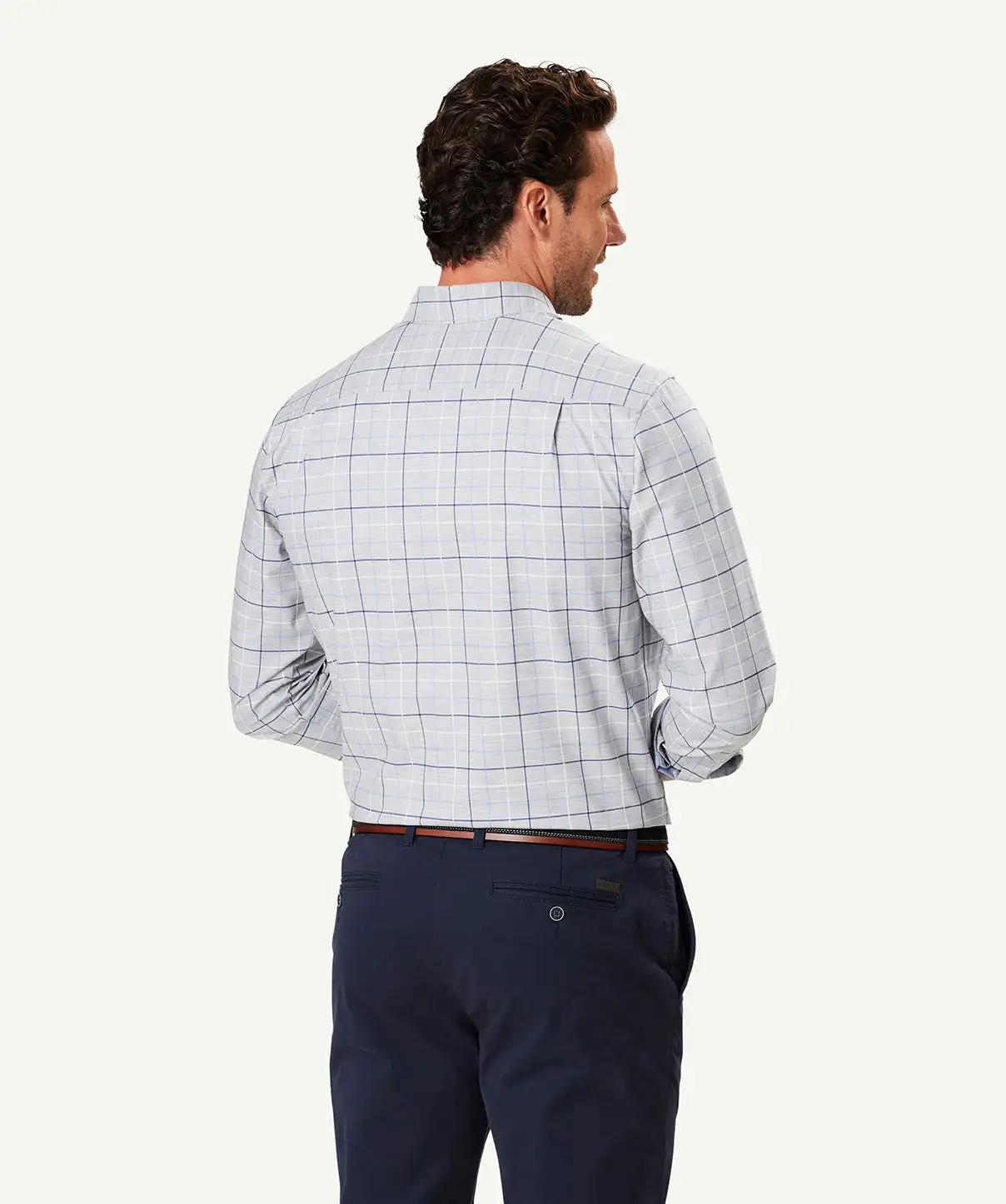Gazman Easy Care Twill Check Long Sleeve Shirt – Grey Melange