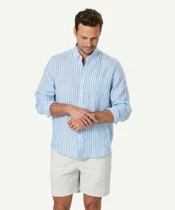 Our French Linen Stripe Shirt is soft washed and constructed from premium linen for accelerated comfort. Featuring a chest pocket, button down collar, and contrast trims. This stripe shirt pairs effortlessly with chinos and classic shorts.