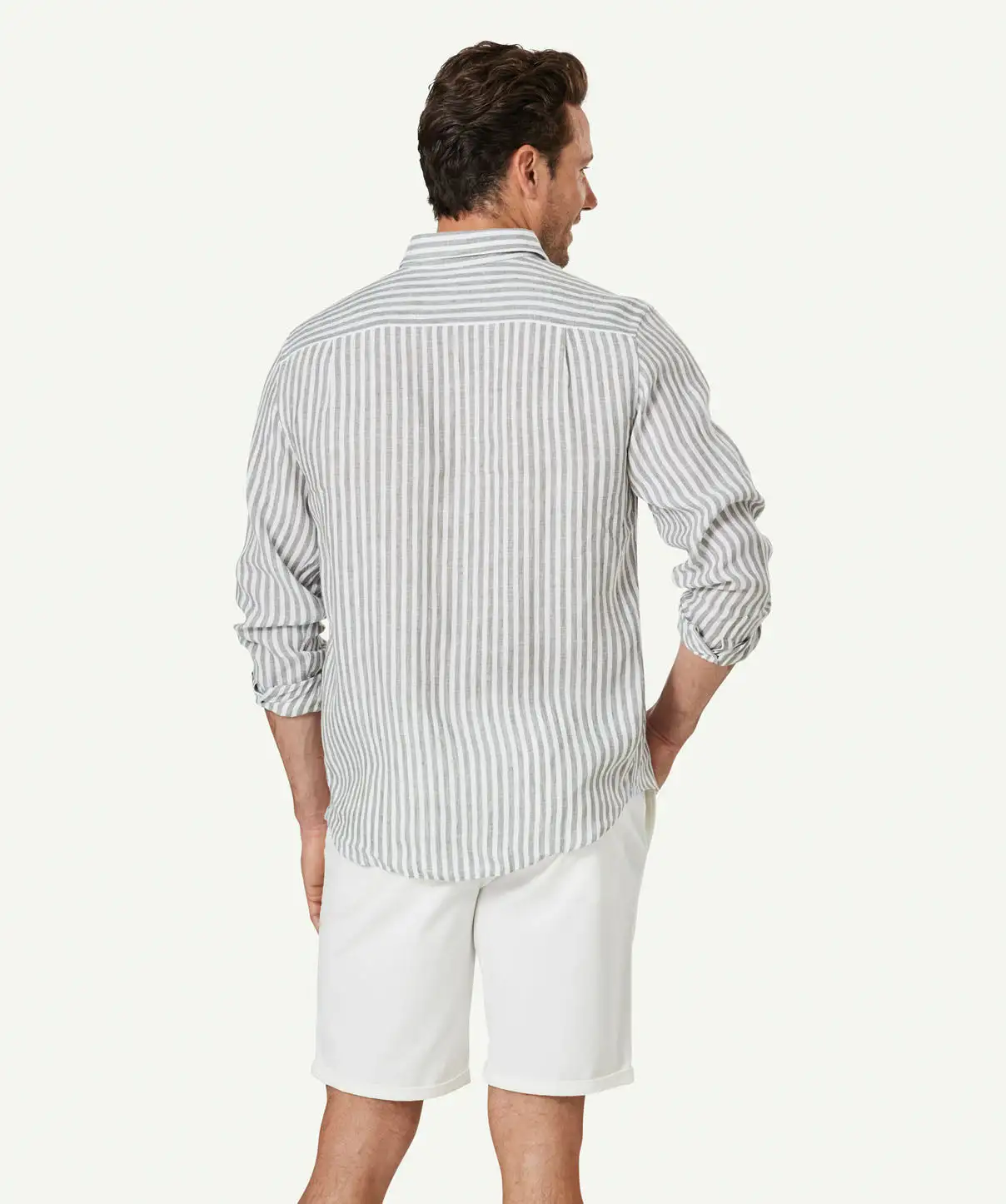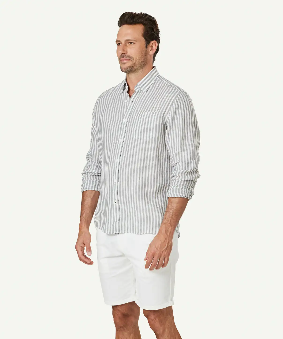 Gazman French Linen Stripe Long Sleeve Shirt – Khaki
