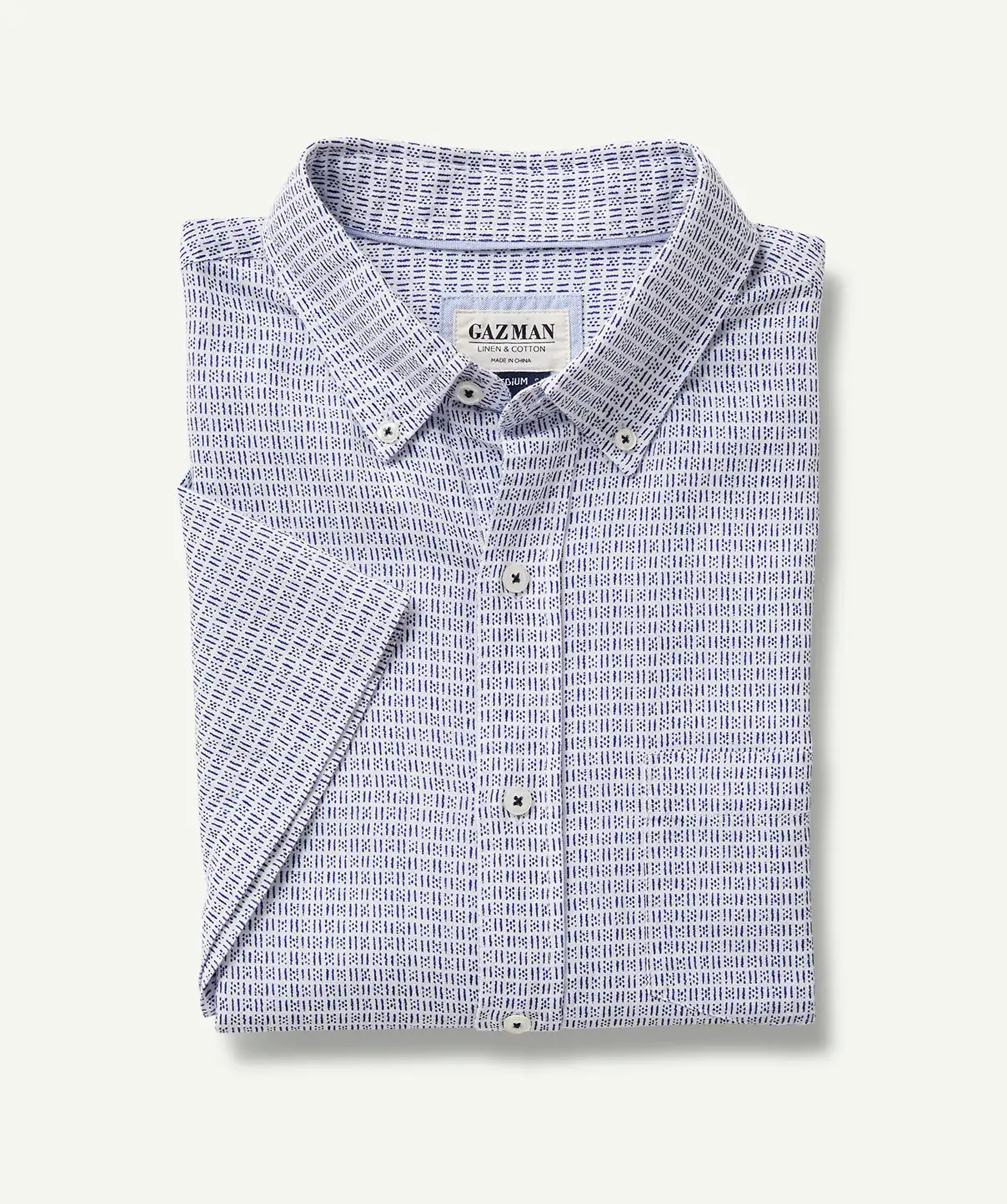 Nothing is quite as cool and comfortable on a hot day than a linen and cotton blend shirt. Featuring a navy dash print, this short sleeve shirt is easy to wear with just about everything in your wardrobe.
