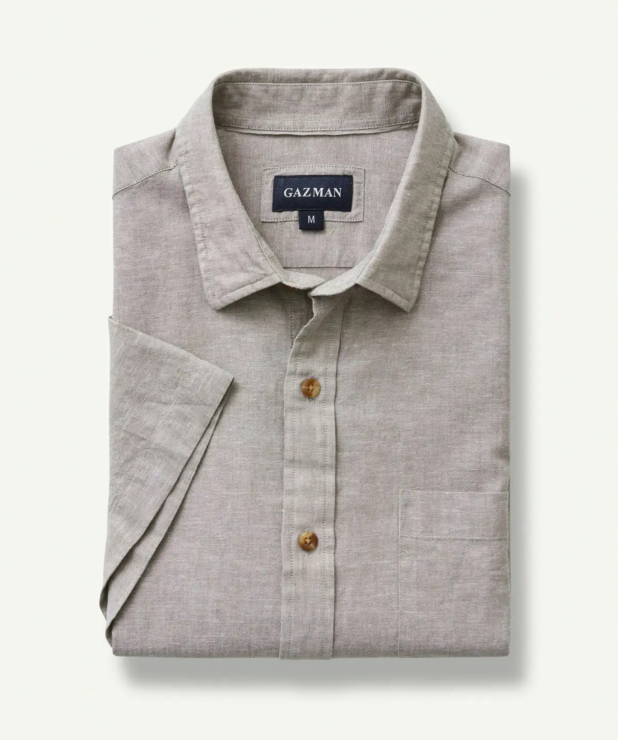 Gazman Linen Blend Plain Short Sleeve Shirt – Khaki