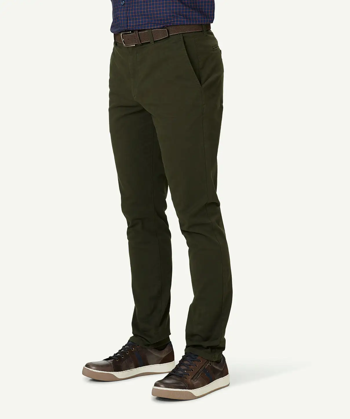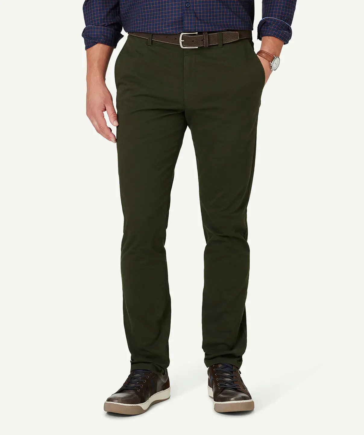 Designed for the man of today, our modern fit chino adds a smart finish to every outfit, with less fabric gathering around the ankle. The perfect balance between form-fitting and comfort, these slim chinos are made from a mid-weight soft twill fabric for added stretch and wearability. Available in a variety of colours for easy matching. A staple for effortless style, this slim fit gives a modern look, taking you from the office to casual weekends.