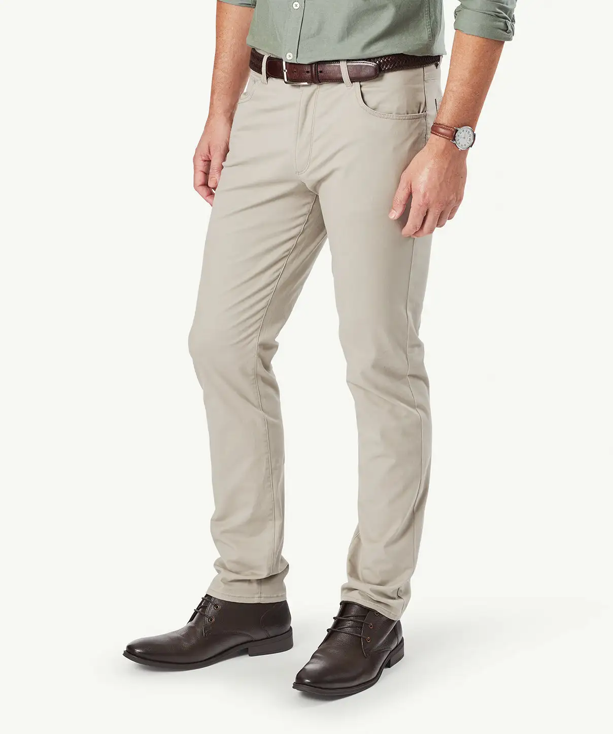 Comfortable and smart, this mid-weight stretch pant fits like your favourite pair of jeans, but looks smart enough to be worn to dinner and beyond. Made from a cotton blend stretch fabric, these modern fit pants have room through thigh and tapering from the knee to the ankle.