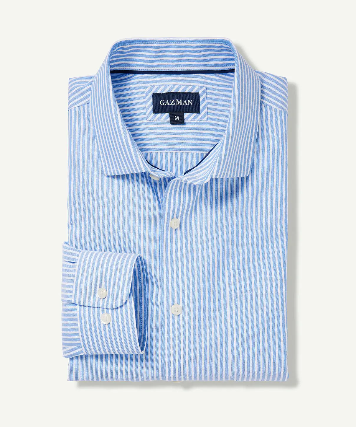 Designed for everyday wear, our regular fitting Non-Iron Twill Stripe Shirt takes the hassle out of your morning routine. Constructed with a non-iron cotton finish that is soft to touch, it allows you to simply wash, dry and wear without the worry of ironing, whilst remaining wrinkle free all day long, keeping you looking sharpe morning and night. The shirt features a pleat at the back which rounds off an effortless, clean, and casual look. Pair this blue striped shirt with your favourite navy or cream chinos, or keep it cool and casual layered opened over a white t-shirt and jeans.