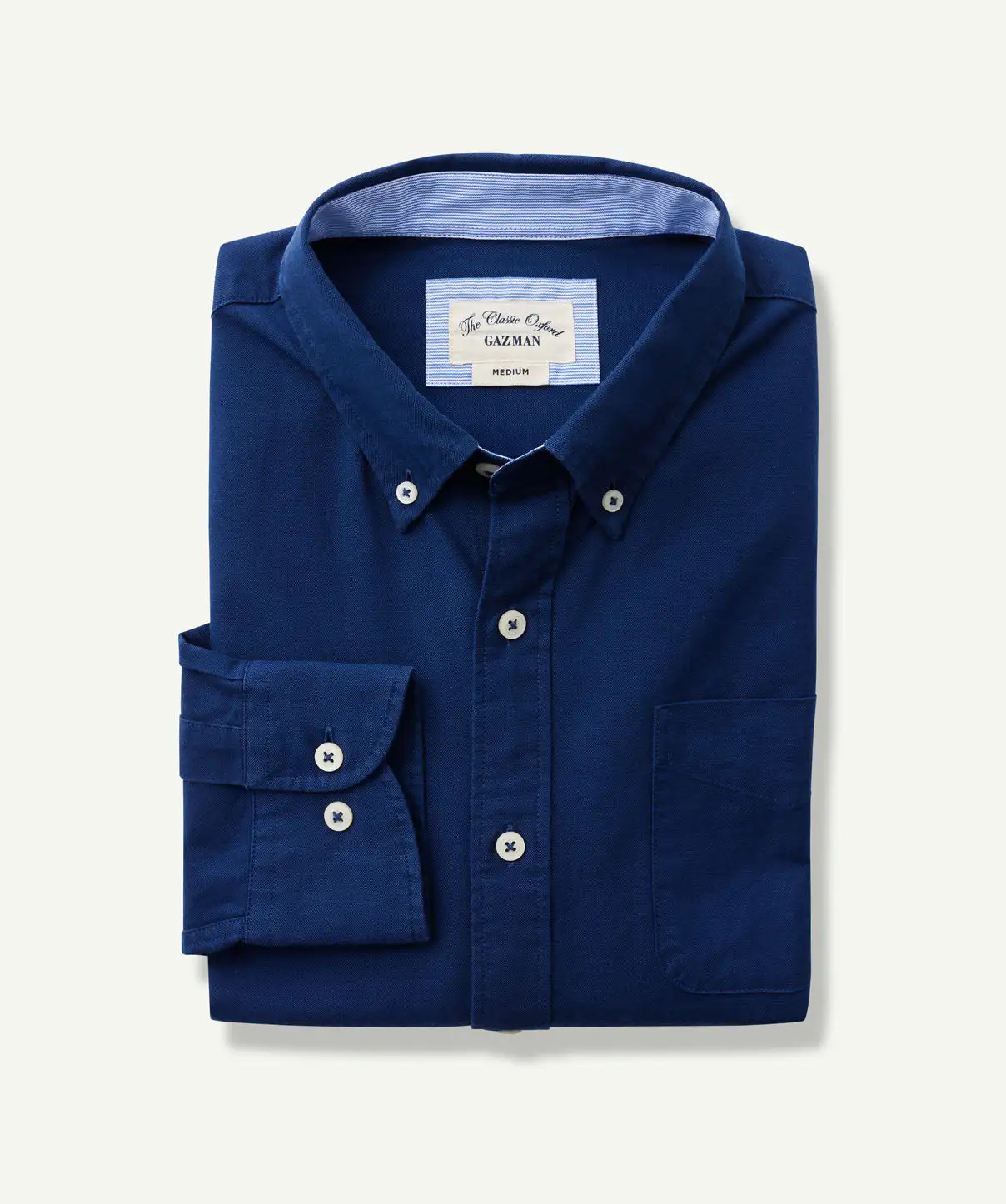 Constructed from a soft casual washed cotton in a classic Navy and Blue, This Oxford shirt is an extremely easy addition to your smart casual wardrobe. Featuring a classic oxford button down collar, chest pocket and pleat, this shirt will shortly become a favourite.