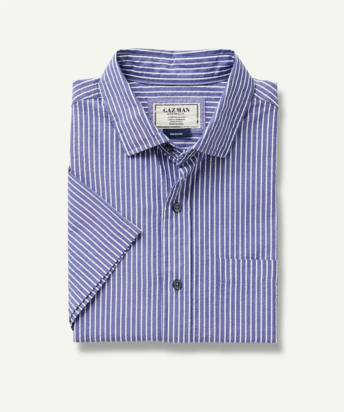 Seersucker fabric is ideal for summer thanks to its quick drying, no iron texture. Made from pure cotton, this short sleeve shirt is perfect for travelling.