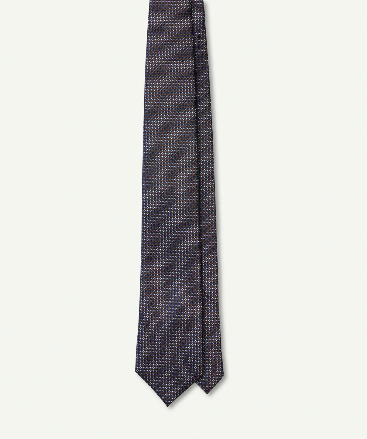 Achieve a sleek and confident aesthetic with this fun silk tie. Our Mini Geo Print Tie is a essential accessory for any smart casual wardrobe.Â