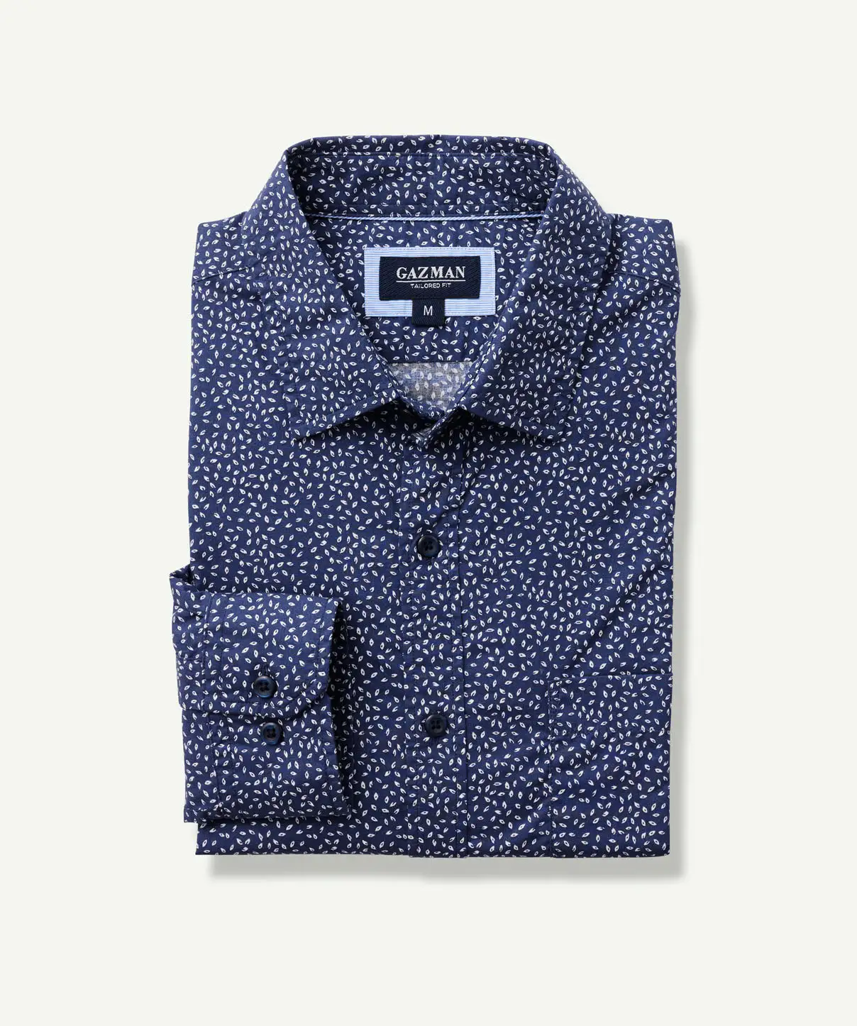 Gazman Tailored Casual Leaf Print Long Sleeve Shirt – Navy