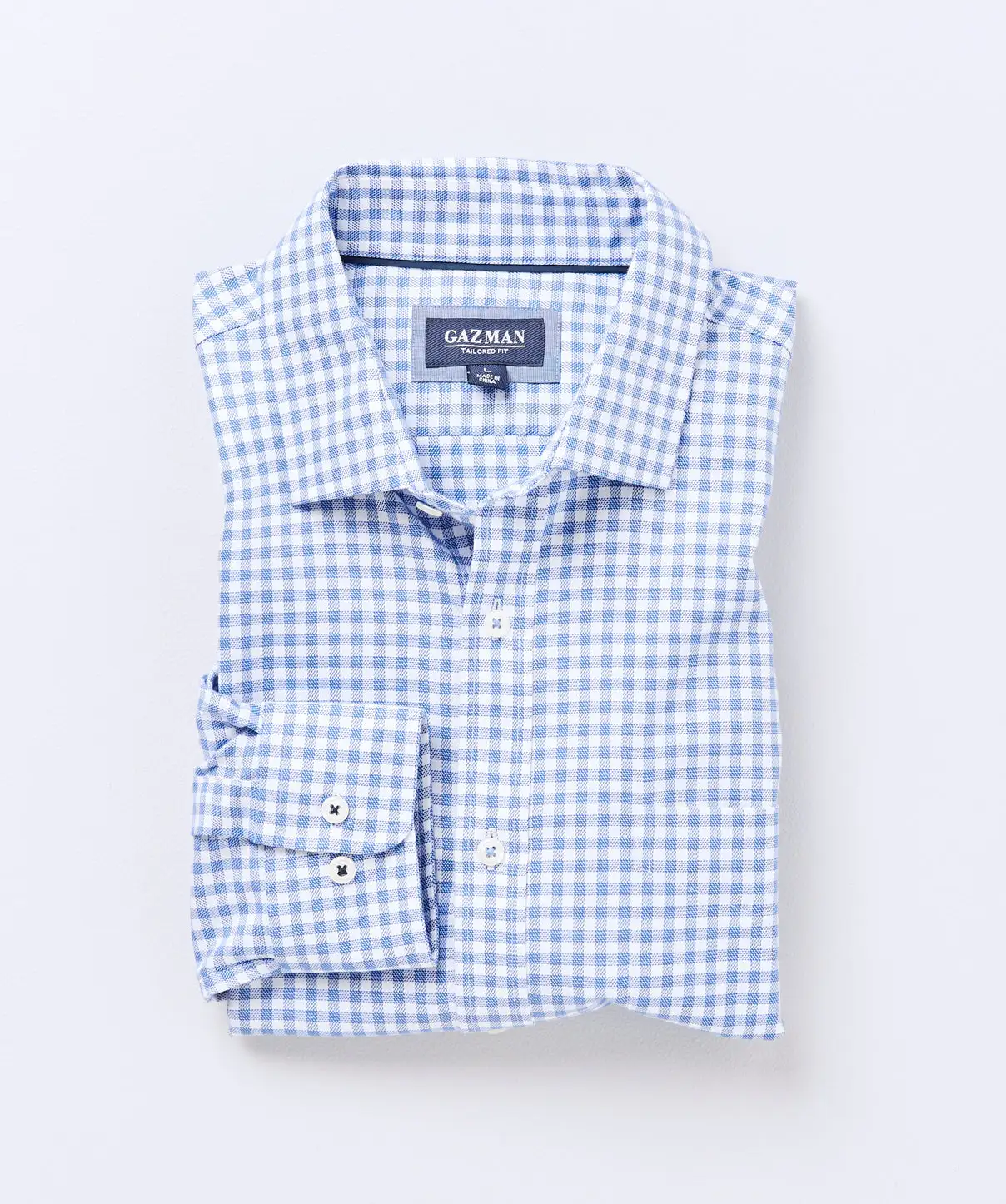 Our men’s easy care dobby check shirt looks good in any situation. Look sharp for a day in the office, then roll up the sleeves for after work drinks.