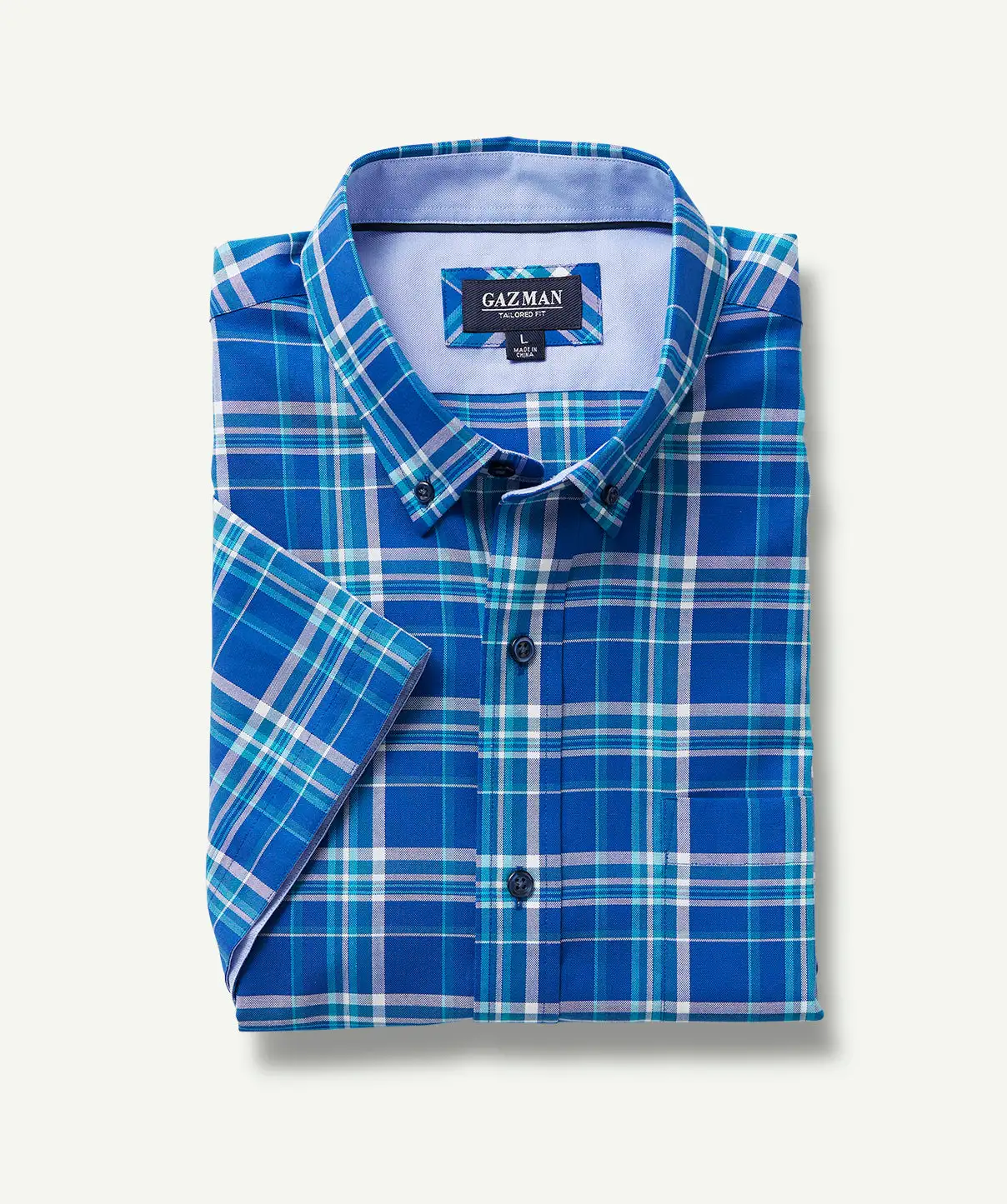 An easy Summer staple. This Cobalt Blue short sleeve is constructed from a breathable cotton that will keep you cool all day long. Featuring an easy car finish, this shirt will be a breeze to maintain.