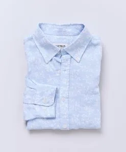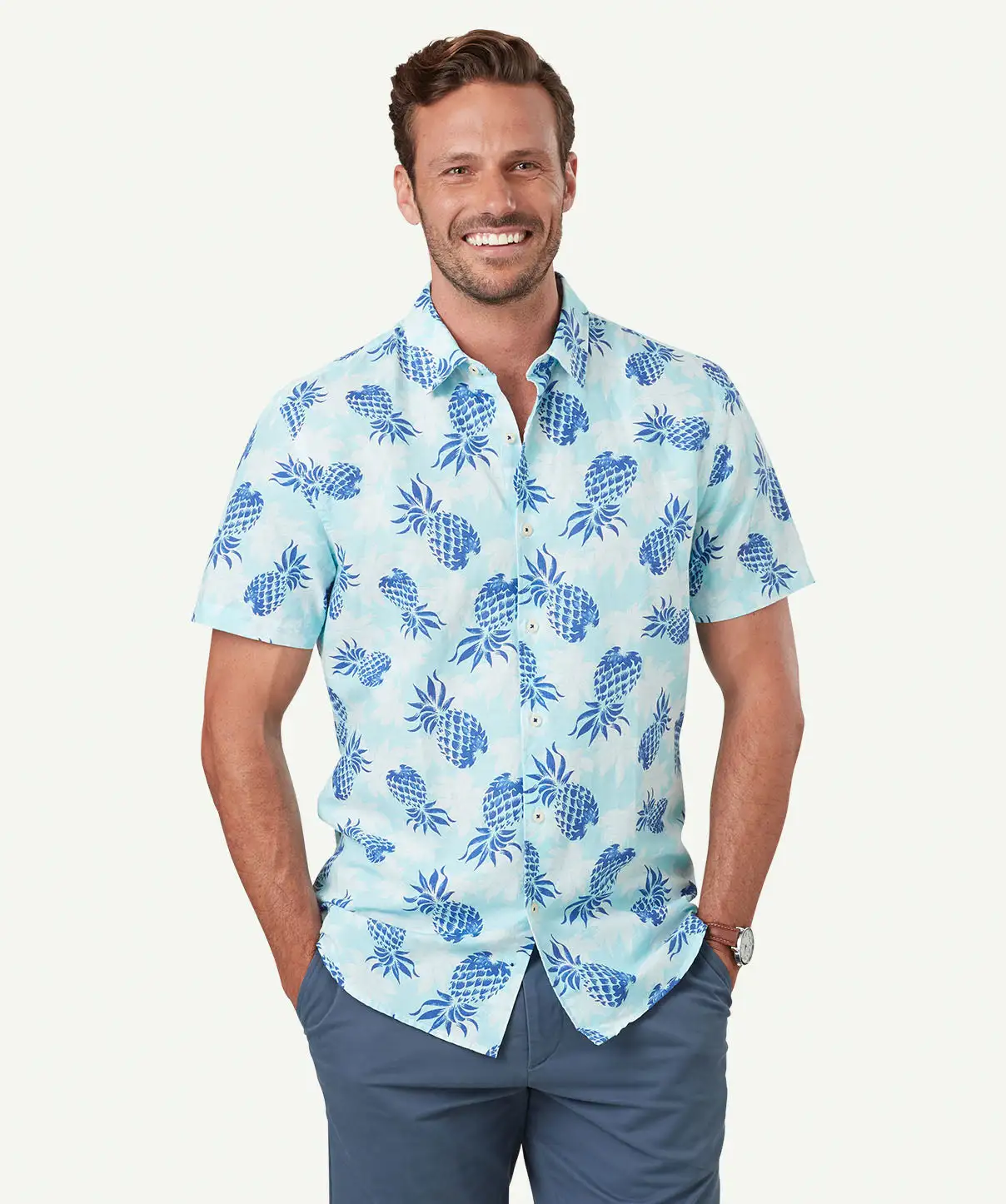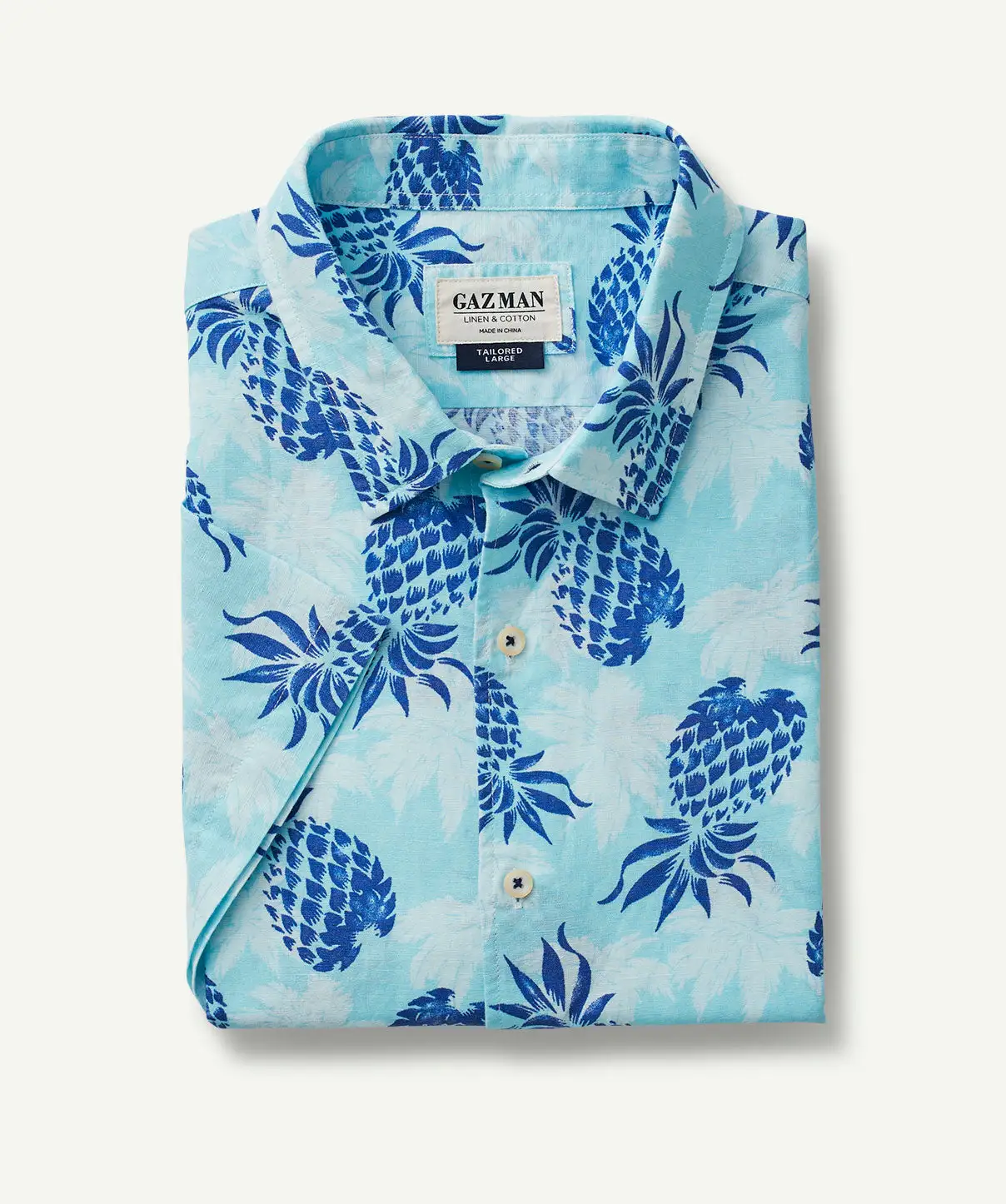 Gazman Tailored Fit Linen Blend Pineapple Short Sleeve Shirt – Turquoise
