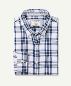 Gazman Tailored Casual Oxford Check Long Sleeve Shirt – Navy