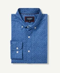 Gazman Tailored Casual Dot Print Long Sleeve Shirt – Dark Blue