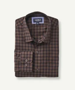 Gazman Tailored Easy Care Herringbone Long Sleeve Shirt – Chocolate