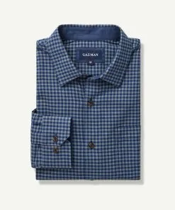 Gazman Brushed Twill Melange Check Long Sleeve Shirt – Slate