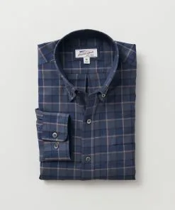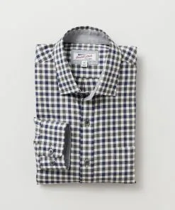 Gazman Brushed Twill Grid Check Long Sleeve Shirt – Midnight