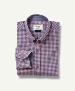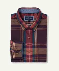 Gazman Casual Twill Multi Check Long Sleeve Shirt – Burgundy