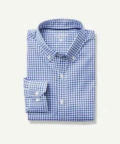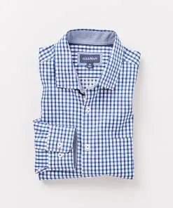 Gazman Easy Care Twill Melange Check Long Sleeve Shirt – Blue Melange