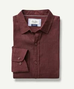 Gazman Tailored Pure French Linen Long Sleeve Shirt – Dark Red