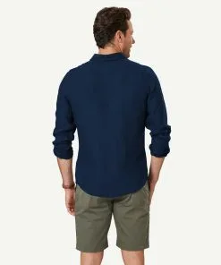 Gazman Tailored Pure French Linen Long Sleeve Shirt – French Navy