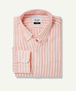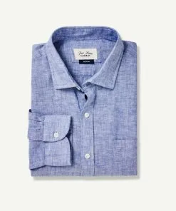 Gazman Tailored Linen Stripe Long Sleeve Shirt – Marine Blue